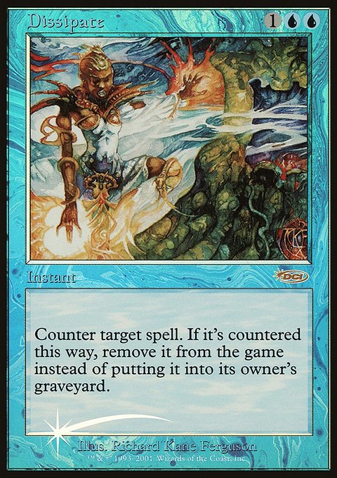 Фойловый промо Dissipate из выпуска Friday Night Magic 2002 на английском языке.