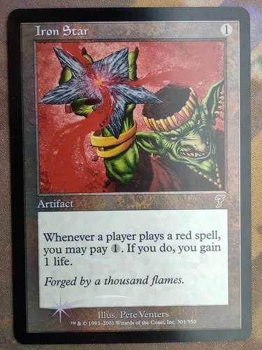 Первая фойл версия карты и единственная в старом бордере. Iron Star из выпуска Seventh Edition, на английском языке.