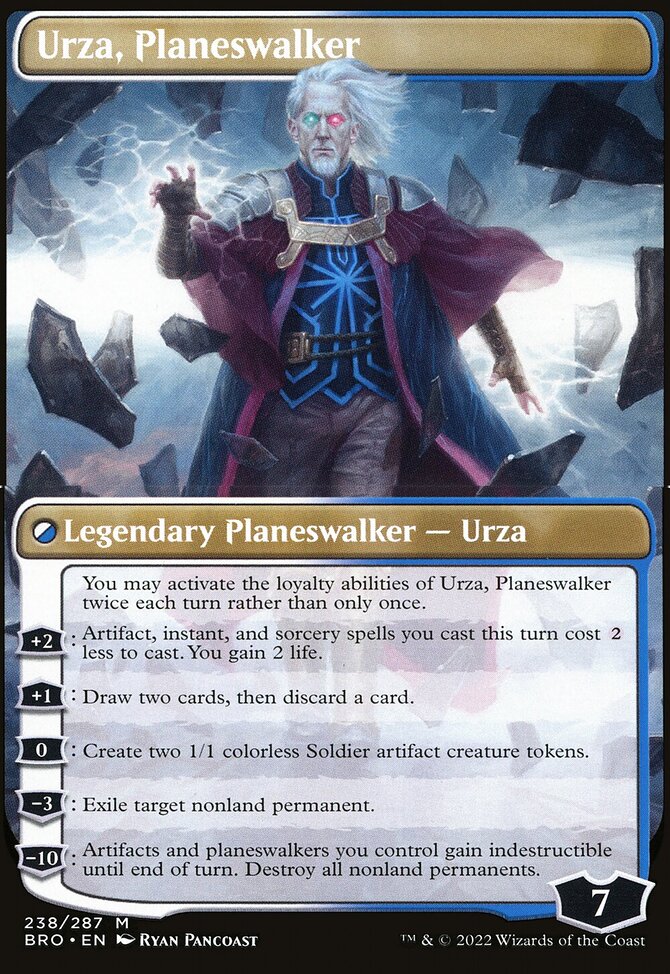 Карточка Urza, Lord Protector (Урза) на английском языке из сета The Brothers' War (Война братьев), BRO. Трансформируется в половину карточки Urza, Planeswalker.