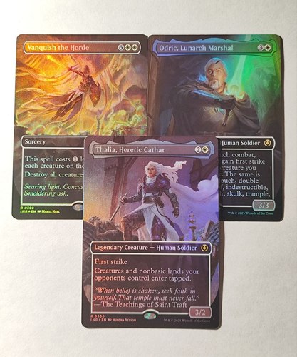 Vanquish the Horde, Odric, Lunarch Marshal; Thalia, Heretic Cathar Borderless Foil INR