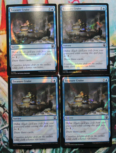 Комлект Treasure Cruise в особом ripple-foil оформлении из премиальных колод MH3 Commander. Карты новые, хранились в протекторах, не игрались.