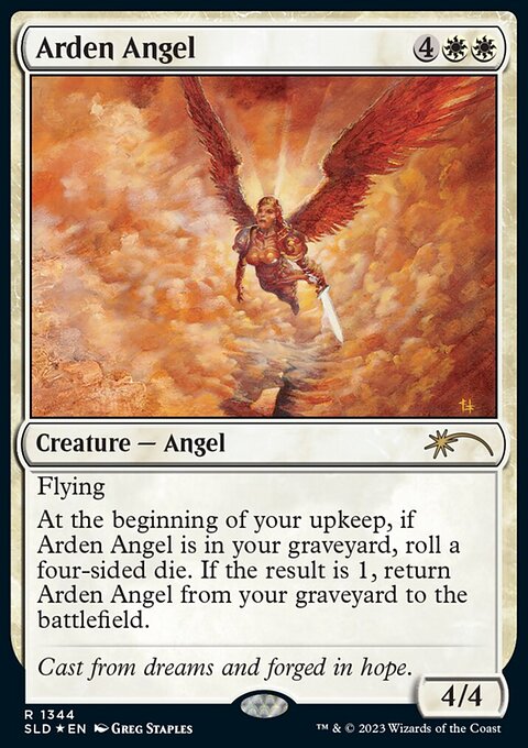 Фойловый Arden Angel. Выпущен в колоде с ангелочками специальной серии Secret Lair, до этого был крайне ограниченной промкой. Украсит любую коллекцию пернатых созданий. Карта новая, не игралась, хранилась в протекторах.