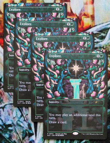 4 промочных Explore с Secret Lair Premier Play. Карты новые, не игрались, хранились в протекторах.