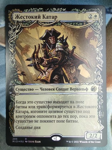 Фойловый Brutal Cathar #286 Showcase из выпуска Innistrad: Midnight Hunt на русском языке.