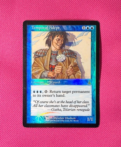 Ретро фойловенький Адепт из самого первого издания с уникальной картинкой (которая больше не репринтилась). Карта в немного поигранном состоянии. Ссылки на дополнительные фотографии: