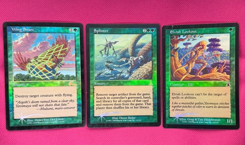 Три ретро фойловеньких зелёных карты (одна из Легаси и две из Дестани). Состояние карт немного поигранное, имеются потёртости/продавленности/микроцарапины разной степени на рубашках или лицевых сторонах. Дополнительные фотографии:
