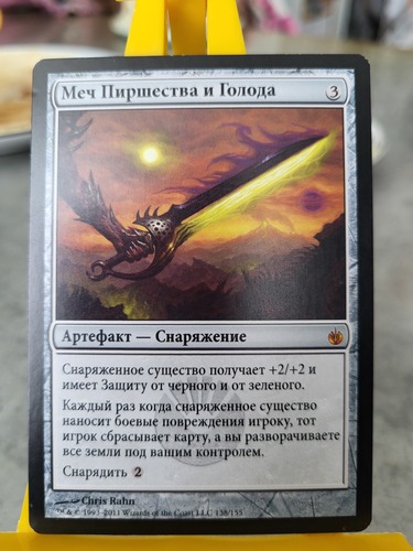 Продам Меч Пиршества и Голода Mirrodin Besieged Ru 138/155 Sp. Долго лежал в альбоме, за ненадобность ищет новые любящие руки.