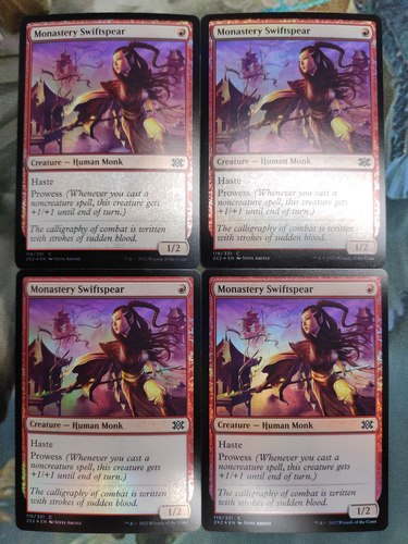 Фойл 4x Monastery Swiftspear из выпуска Double Masters 2022 на английском языке.
