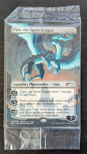 Промо карта Ugin, the Spirit Dragon, выдавался участникам региональных ПТ. Карта не была распечатана. Шикарный арт Kelogsloops.
