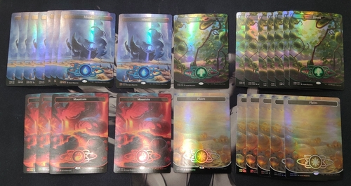 В состав лота входит 26 фойловых полноформатных базовых земель из набора Unfinity, карточки в отличном состоянии, всю дорогу были в протекторах:
