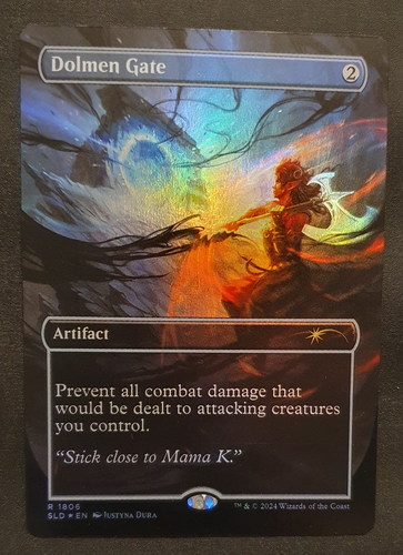 Фойловая карта Dolmen Gate с уникальным безрамочным артом из набора Secret Lair: Karlach's Rage. Карта в отличном состоянии.