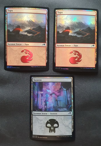 3 фойловых русских земли (1 шт. Болото #288, 2шт. Гора #289) из Камигава: Неоновая Династия. Карты в отличном состоянии.