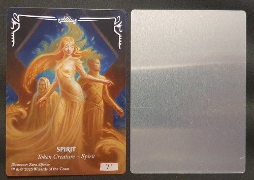 Металлический токен Spirit (размер */*) из официального набора коллабы WotC и Beadle & Grimm's: Tarkir Dragonstorm Token Set.