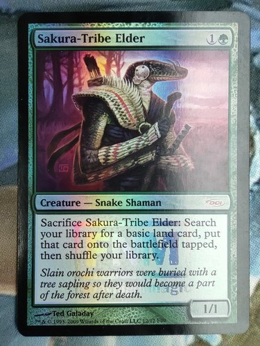 Фойловый Sakura-Tribe Elder из выпуска Friday Night Magic 2009 на английском языке.