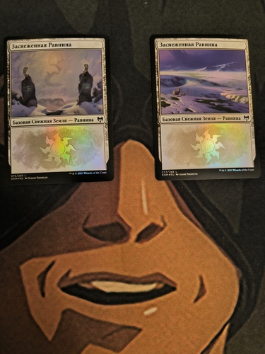 Две разные фойловые Заснеженные Равнины из Калдхайма на русском. Игрались один раз на домашнем силеде в протекторах, состояние идеальное.