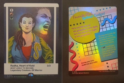 Фойловая двухсторонняя карта Radha, Heart of Keld с уникальным безрамочным артом из набора Secret Lair High: Class of '87. Карта в отличном состоянии.
