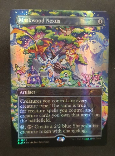 Фойловая карта Maskwood Nexus с уникальным безрамочным артом из набора Secret Lair Deck: Everyone's Invited в отличном состоянии.