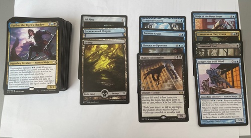 Простенькая, готовая колода для EDH, отправлю в перфектах и картонной коробочке. Ссылка на деклист(версии/фойление должны совпадать, язык ENG/RU): https://archidekt.com/decks/13856796/for_sale_yuriko