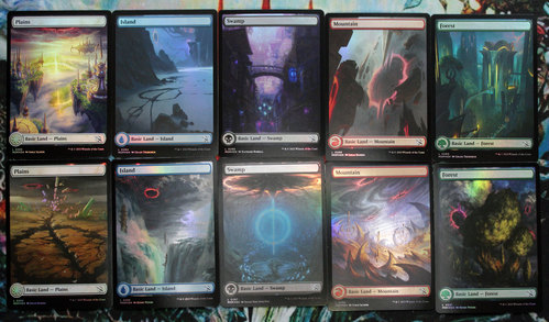 Полный набор фойловых базиков из MOM со знамениями фирексийского вторжения. Карты новые, не игрались, хранились в протекторах.