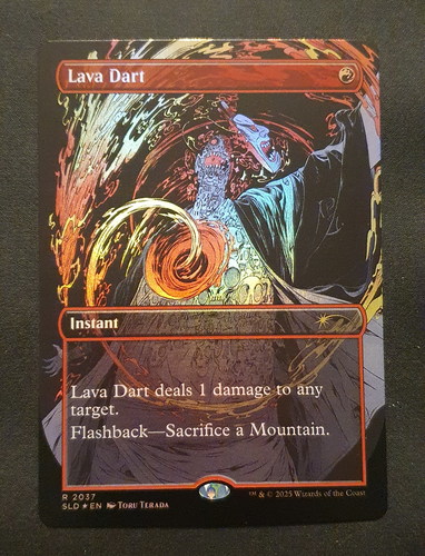 Фойловая карта Lava Dart с уникальным безрамочным артом из набора Secret Lair: vroooOOOMMMMMM! Карта в отличном состоянии.