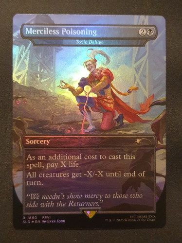 Фойловая карта Toxic Deluge с уникальным безрамочным артом из набора Secret Lair x FINAL FANTASY: Game Over в отличном состоянии.