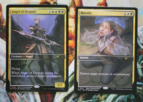 Промочные Angel of Despair (foil) и Mortify с чемпионата магазина. Карты новые, хранились в протекторах.