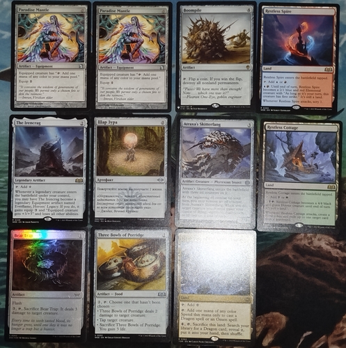 Paradise Mantle 2 Eng , Boompile , The Irencrag , Шар Зура, Atraxa's Skitterfang, Three Bowls of Porridge, Bear Trap foil dsk, Maelstrom of the Spirit Dragon, Restless Spire, Restless Cottage , Sp