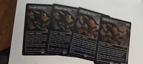 Четыре восхитительных леерных тот-кнота, для любителей макарон и стильных артов.Карты игрались в двойных протекторах, затем хранились в альбоме, и теперь ищут новый дом.