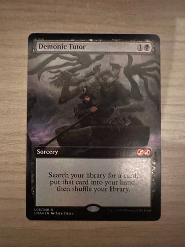 Demonic Tutor из Ultimate Box Topper (UMA-UBT) в отличном состоянии - хранился в двойном протекторе в альбоме с момента появления на свет.