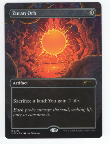 Карта Zuran Orb с уникальным безрамочным артом из набора Secret Lair: Alien Auroras. Карта в отличном состоянии.