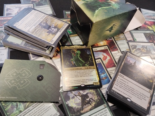 Обуун, предок мул дайя готовая колода в протекторах, коробочка, счетчик жизней. Токены. Вроде как не игралась совсем.