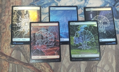 5 разных фойловых полноформатных базовых земель из нового сета про Человека-Паука