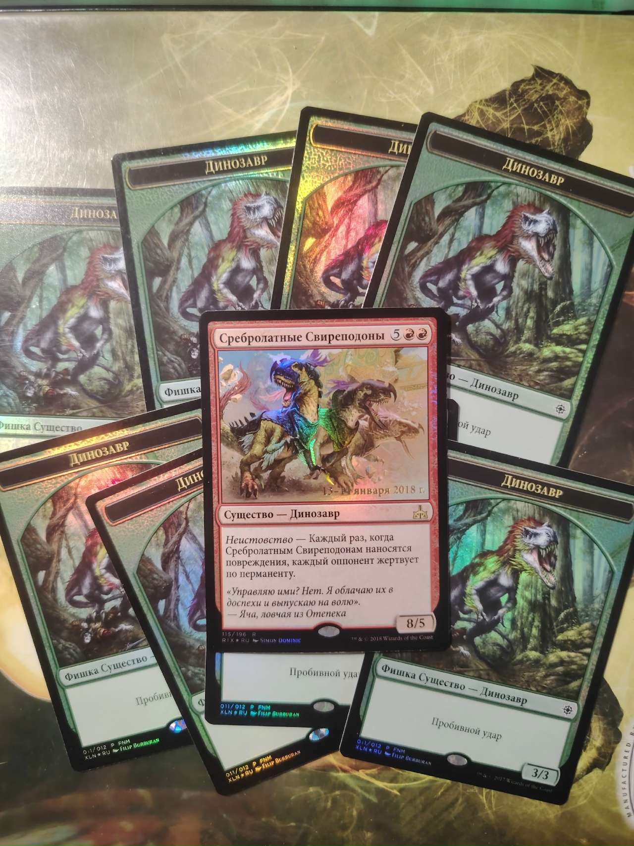 RU FOIL Prerelease Сребролатые Свиреподоны + 8 токенов Динозавров FOIL