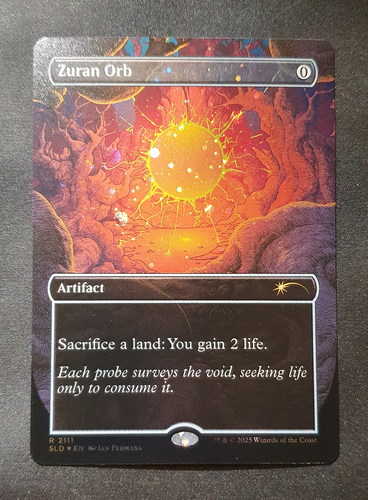Фойловая карта Zuran Orb с уникальным безрамочным артом из набора Secret Lair: Alien Auroras. Карта в отличном состоянии.