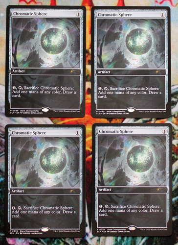 Комплект промочных Chromatic Sphere с чемпионата магазина. Карты новые, не игрались, хранились в протекторах.