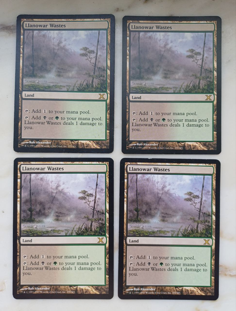 4 Llanowar Wastes из 10 редакции на английском языке.