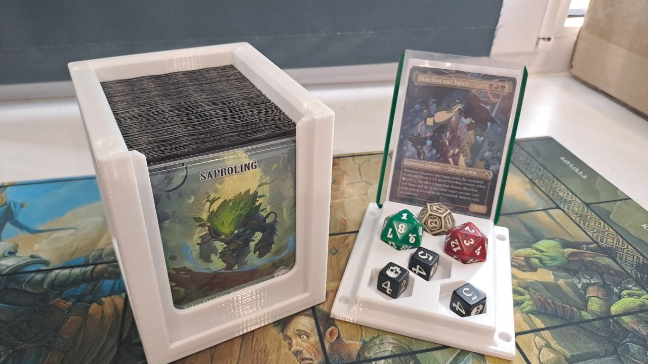 - Вмешает (8,6 см) 100+ карт в двойных протекторах и токены.