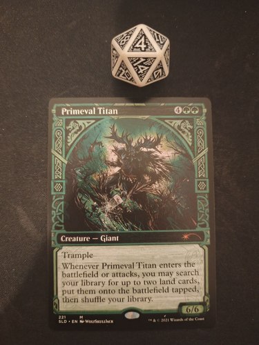 Карточка Primeval Titan #4 из Secret Lair, состояние отличное, всегда была в протекторе, игралась крайне мало