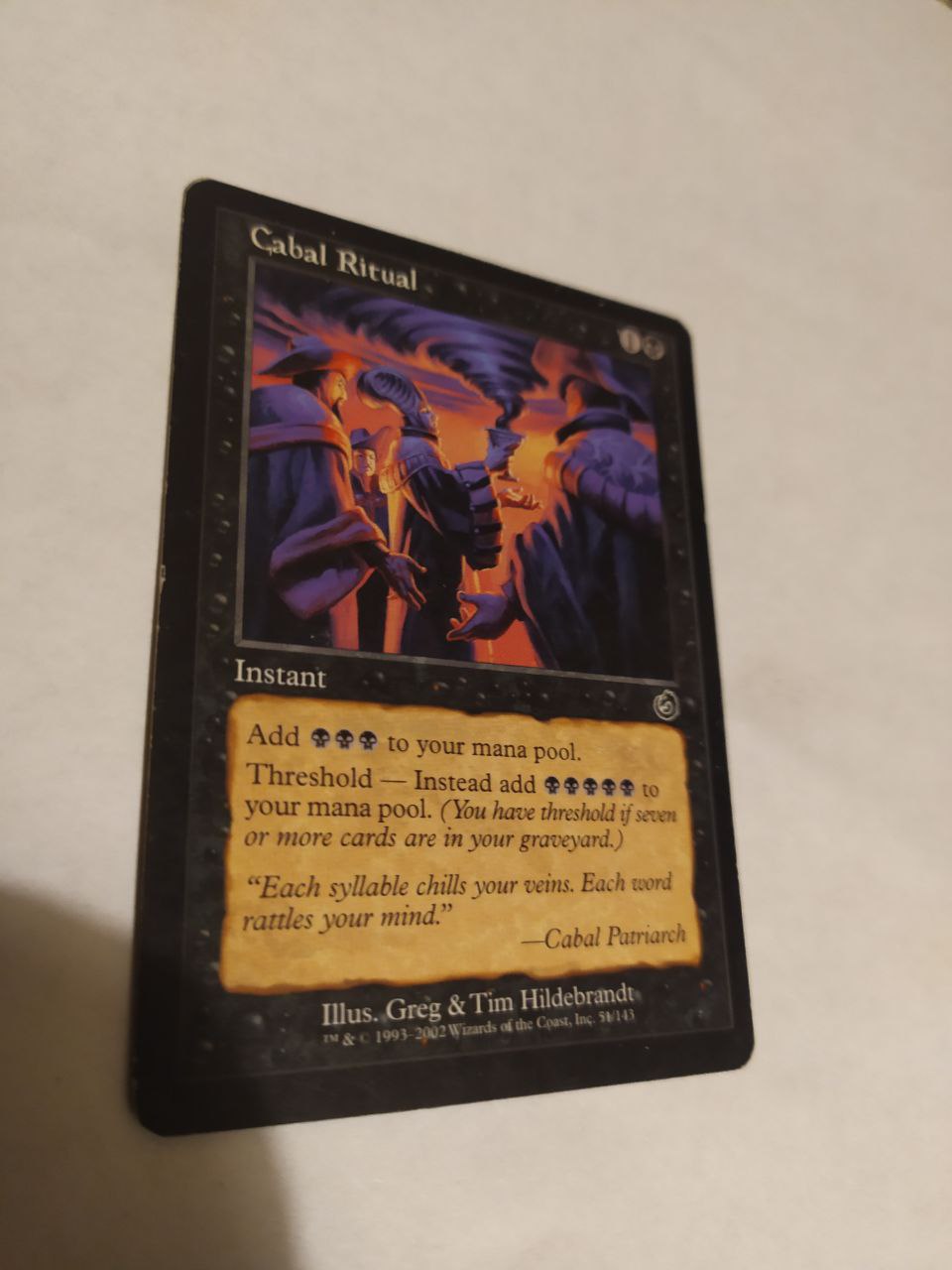 Cabal Ritual, английский, из родного сета Torment с оригинальной кратинкой. Четвертый из плейсета (всего на аукционы выставлено 4 штуки, если есть интерес)