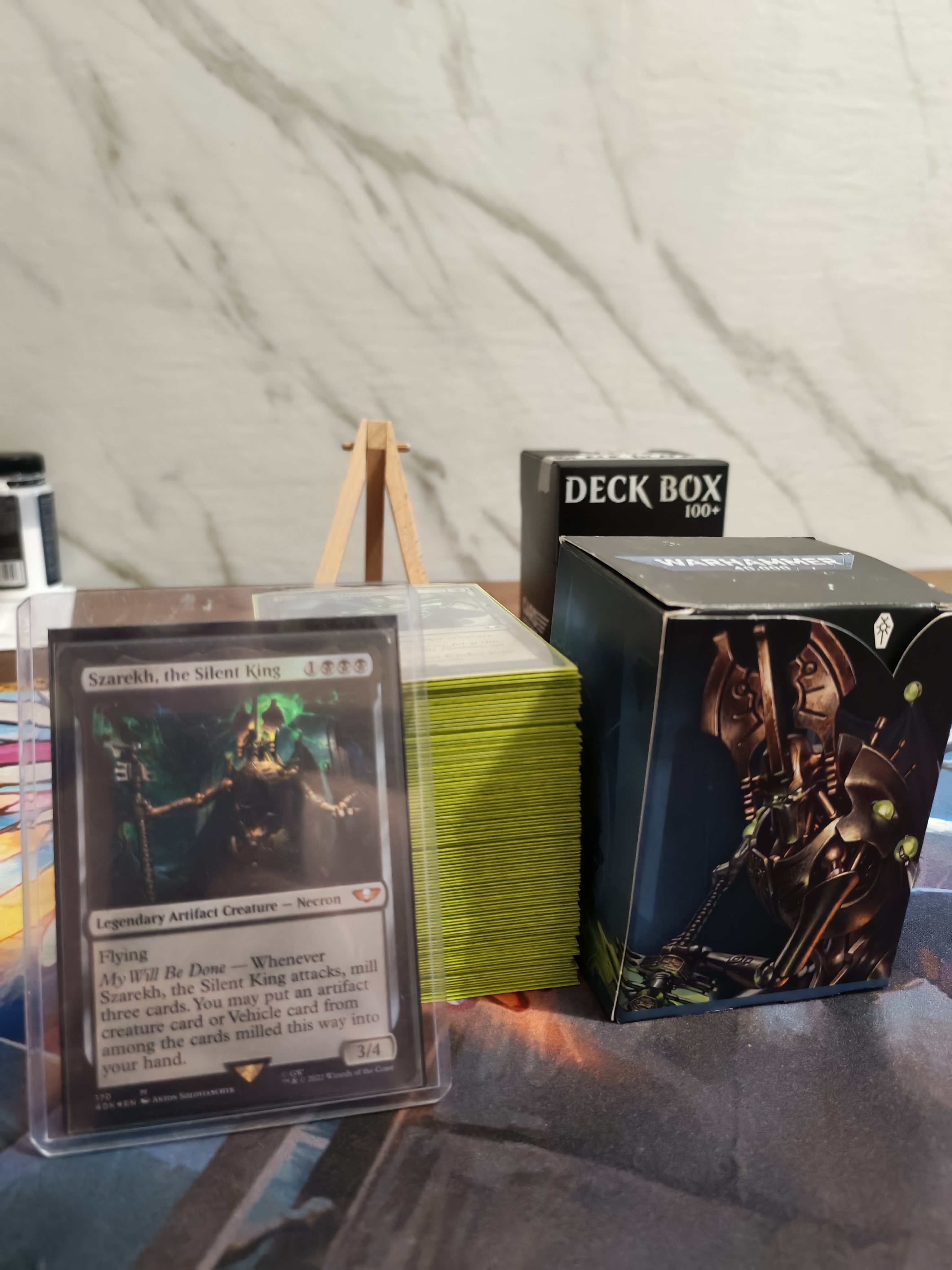 При покупке колода отдаётся в двойных протекторах и в пластмассовой коробке на 100+ карт.