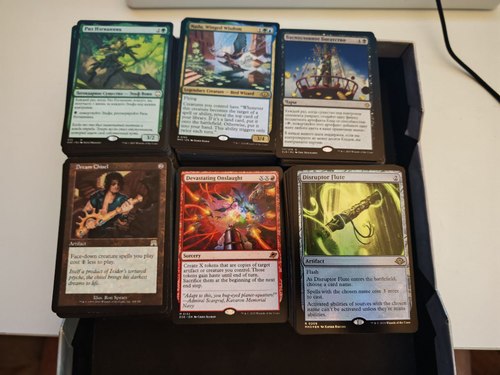 Лот включает в себя 1100 редких и 123 мифические карты, из которых 100 фойловых редких и 26 фойловых мифических.