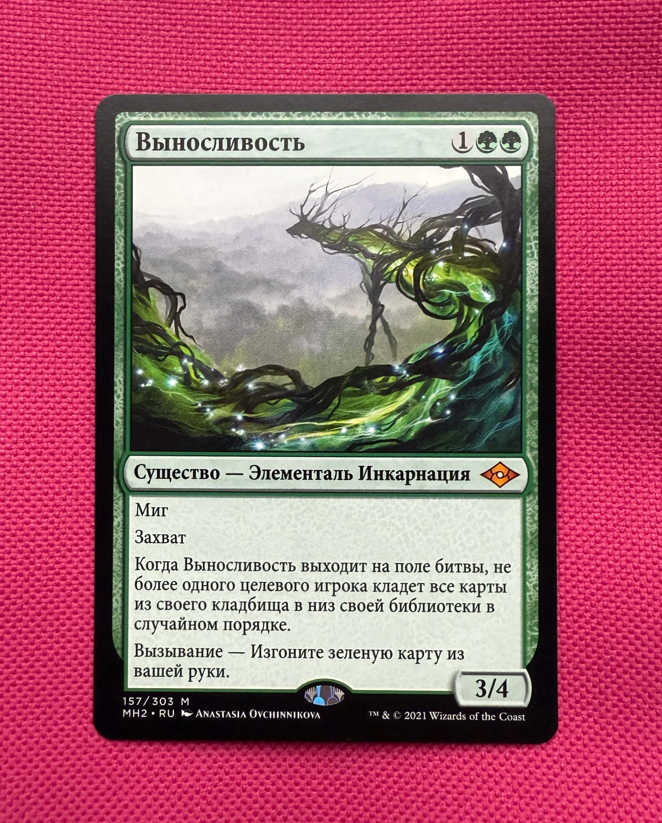 Свежевскрытая Выносливость с изображение от великолепной краснодарской художницы Анастасии Овчинниковой. Карта из вторых горизонтов модерна (на русском языке). Ниже ссылки на доп. фотографии:
