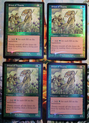 Комплект фойловых олдбордерных Priest of Titania из MH3. Карты новые, не игрались, хранились в протекторах.