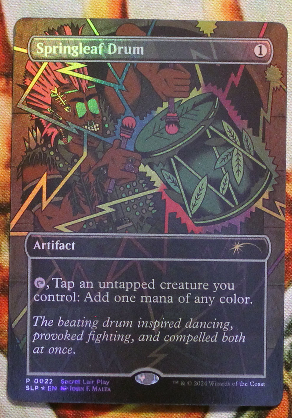 Промочный фойловый Springleaf Drum с соревнований Secret Lair Play. Карта новая, не игралась, хранилась в протекторах.
