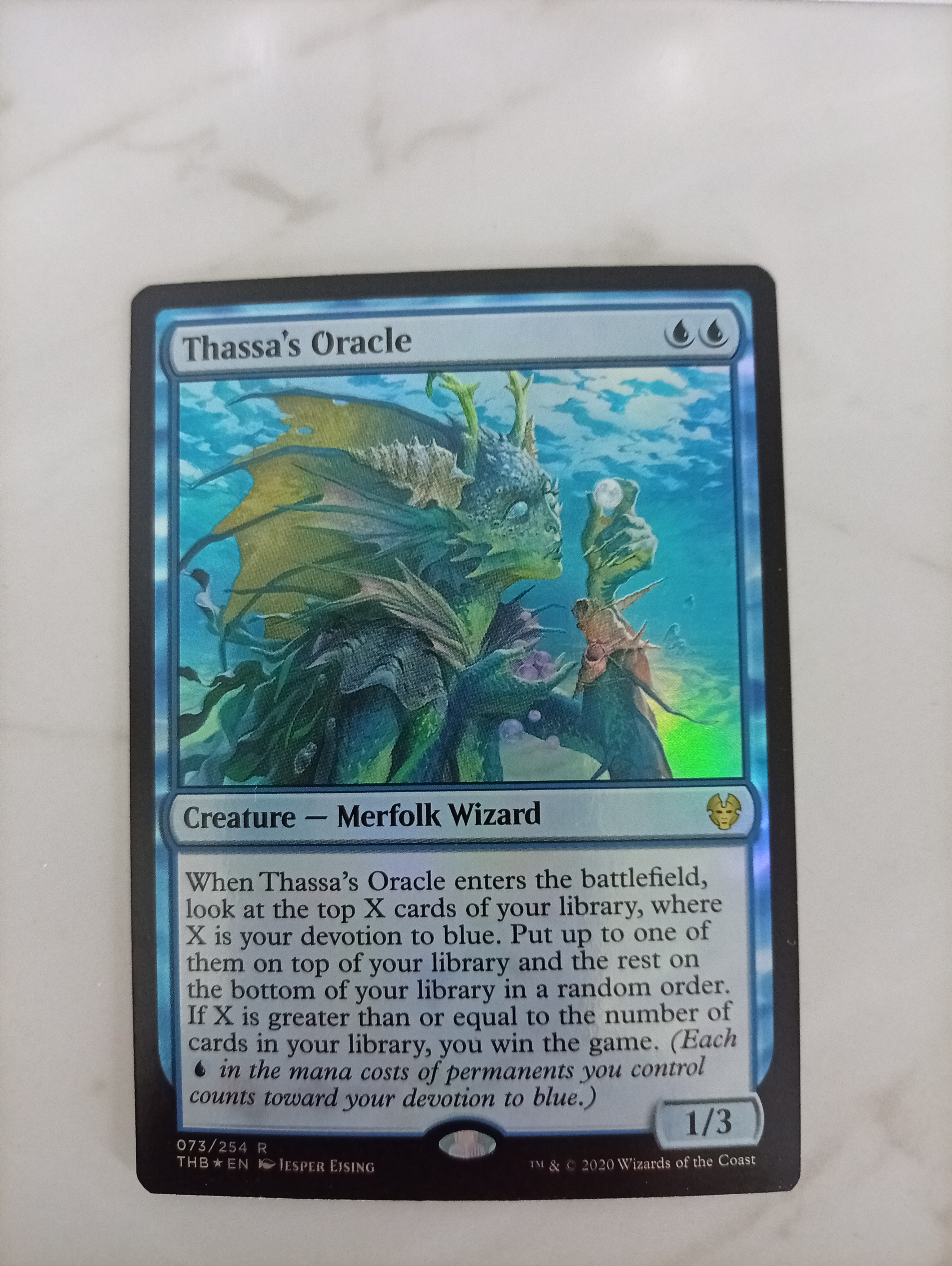 Продам фойл Thassa's Oracle из Theros Beyond Death. Карта в отличном состоянии. Из бустера в альбом и не видела ни одной партии.