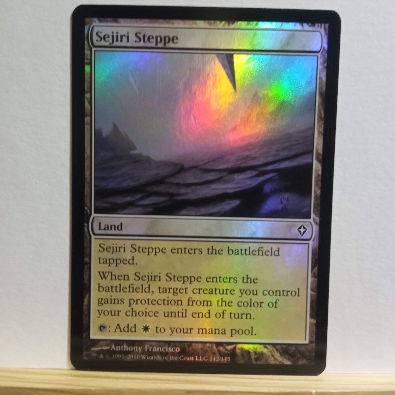 Фойловая Sejiri Steppe из сета Worldwake. На карте присутствуют заметные царапины в центре