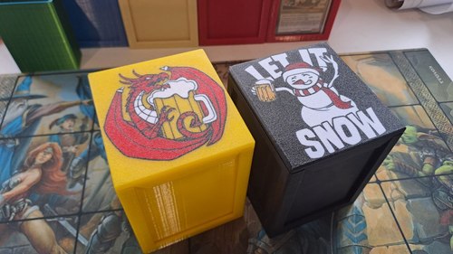 - Внизу крышки слоты чтобы модно держать кубики и деккипера / генерала на столе.