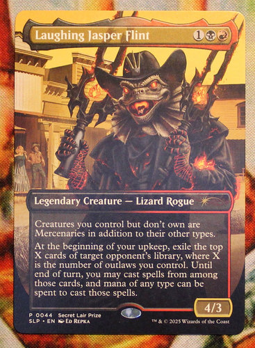 Промочный Laughing Jasper Flint из призовой серии Secret Lair Play. Карта новая, не игралась, хранилась в протекторах.