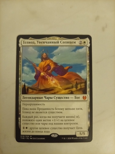 Продам оригинального Гелиода, Увенчанного Солнцем из Thesis Beyond Death. Карта попала из бустера в альбом и не видела ни одной партии.