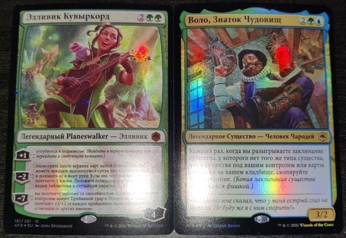 & RUFOIL Элливик Кувыркорд // Ellywick Tumblestrum (pAFR, #181s, RU, FOIL) & RUFOIL Воло, Знаток Чудовищ (AFR, #238, RU, FOIL)